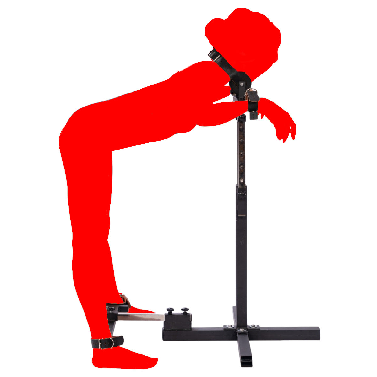 Leather and Metal Bondage Stocks — Built for serious play with a refined, studio-worthy finish. Materials: Leather, Steel/Metal. Obedience Furniture for BDSM play.